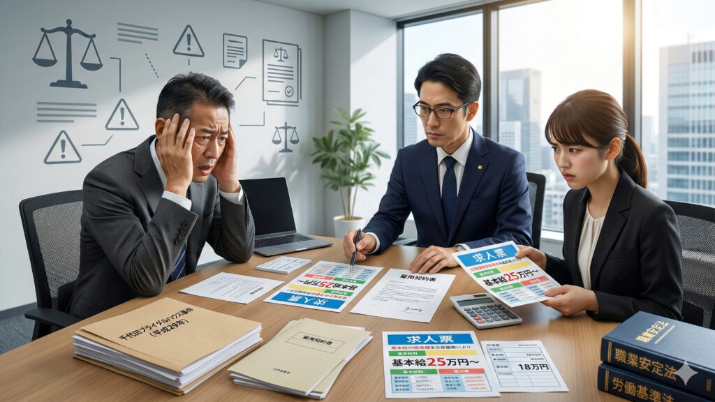 職業安定法等の改正により、おとり求人(虚偽記載)や条件の相違に対する罰則・レピュテーションリスクは劇的に高まっている。